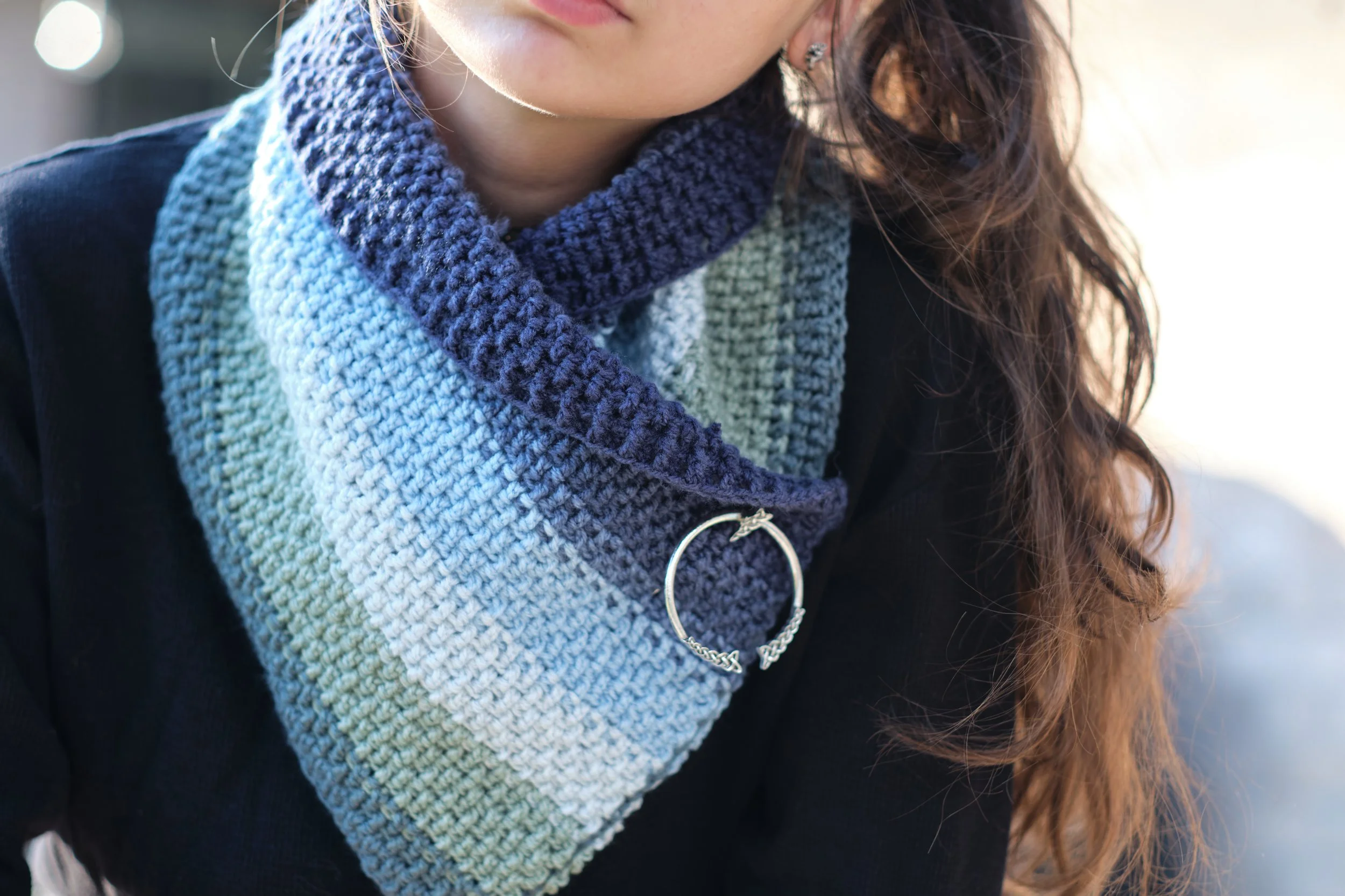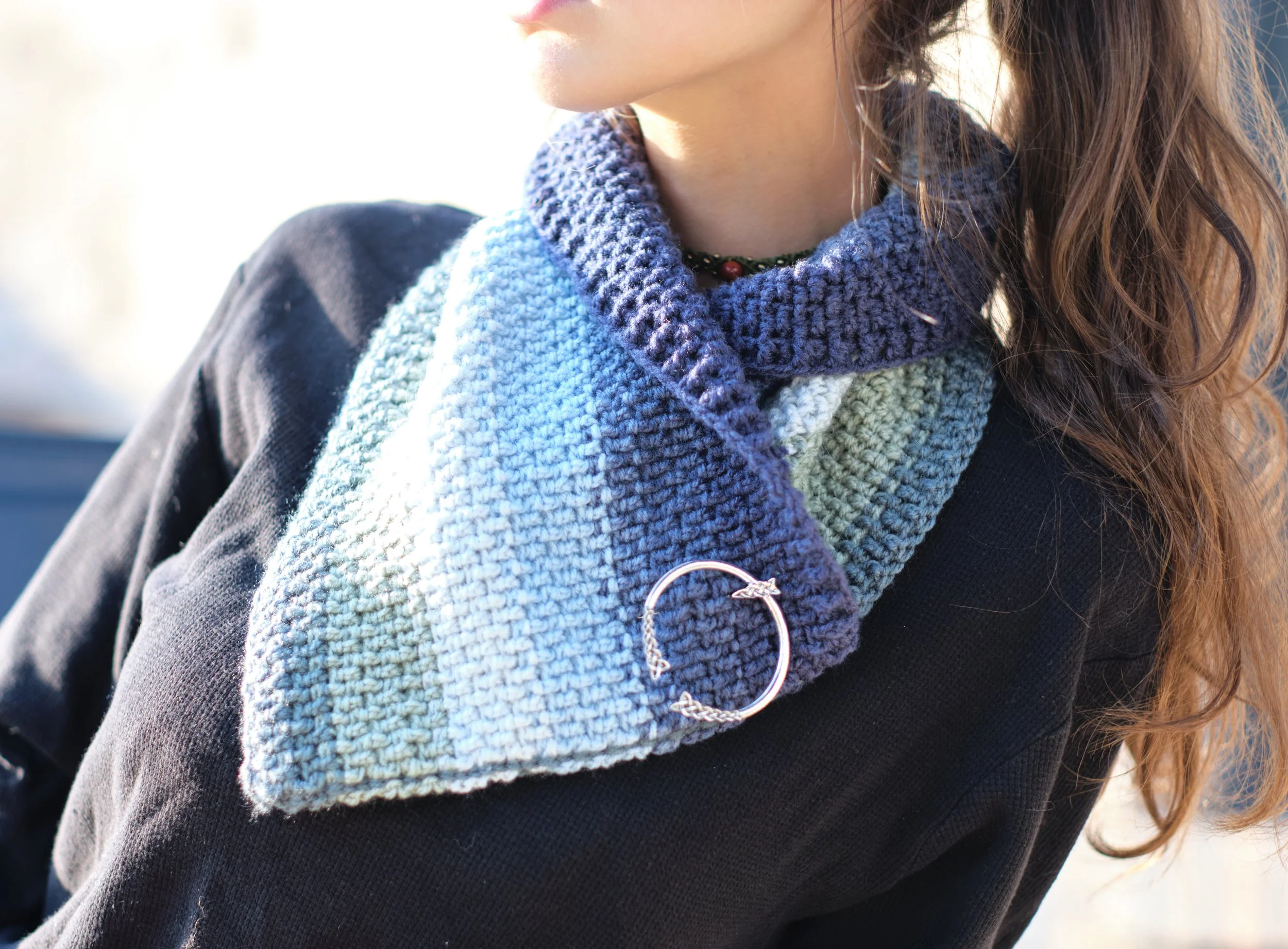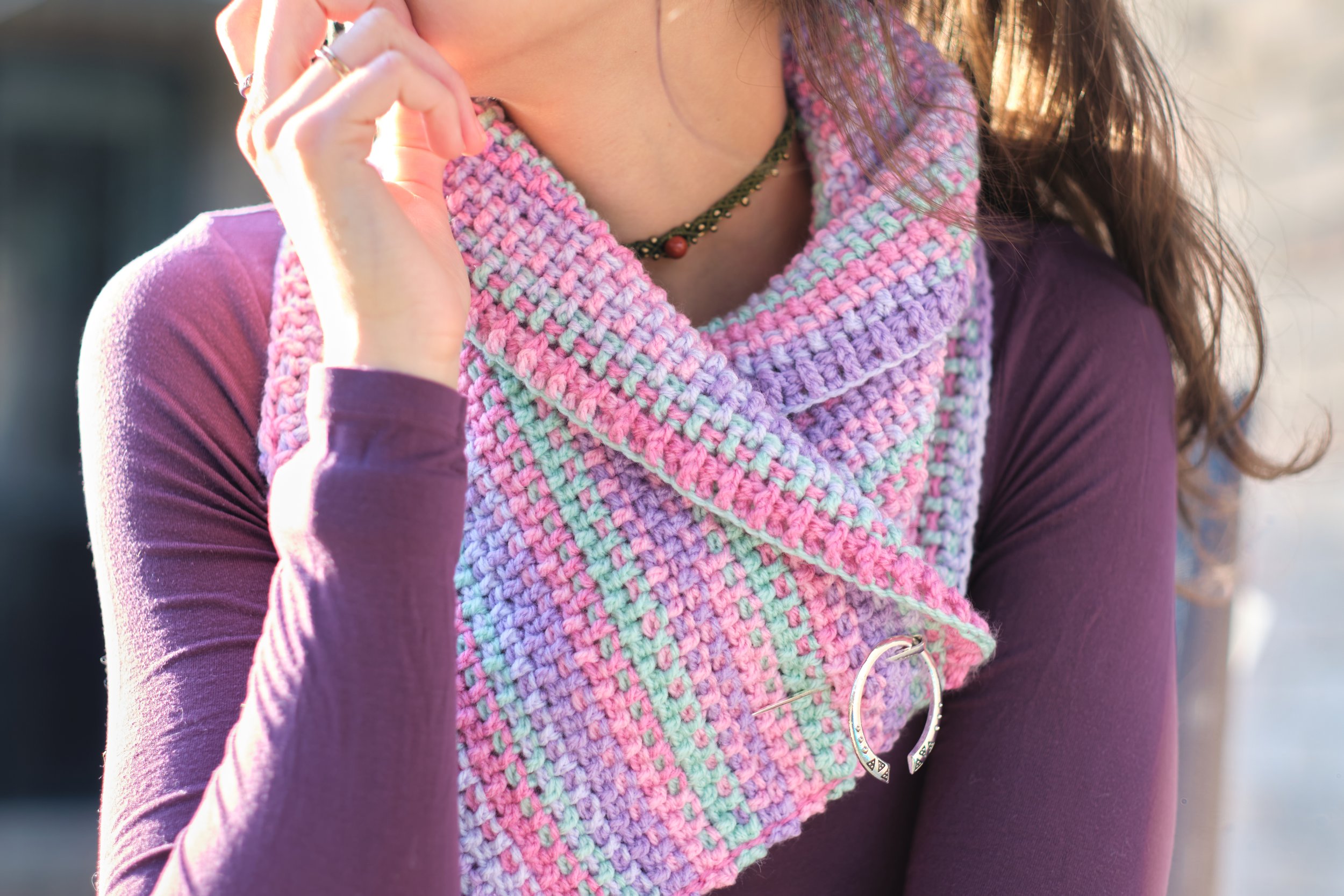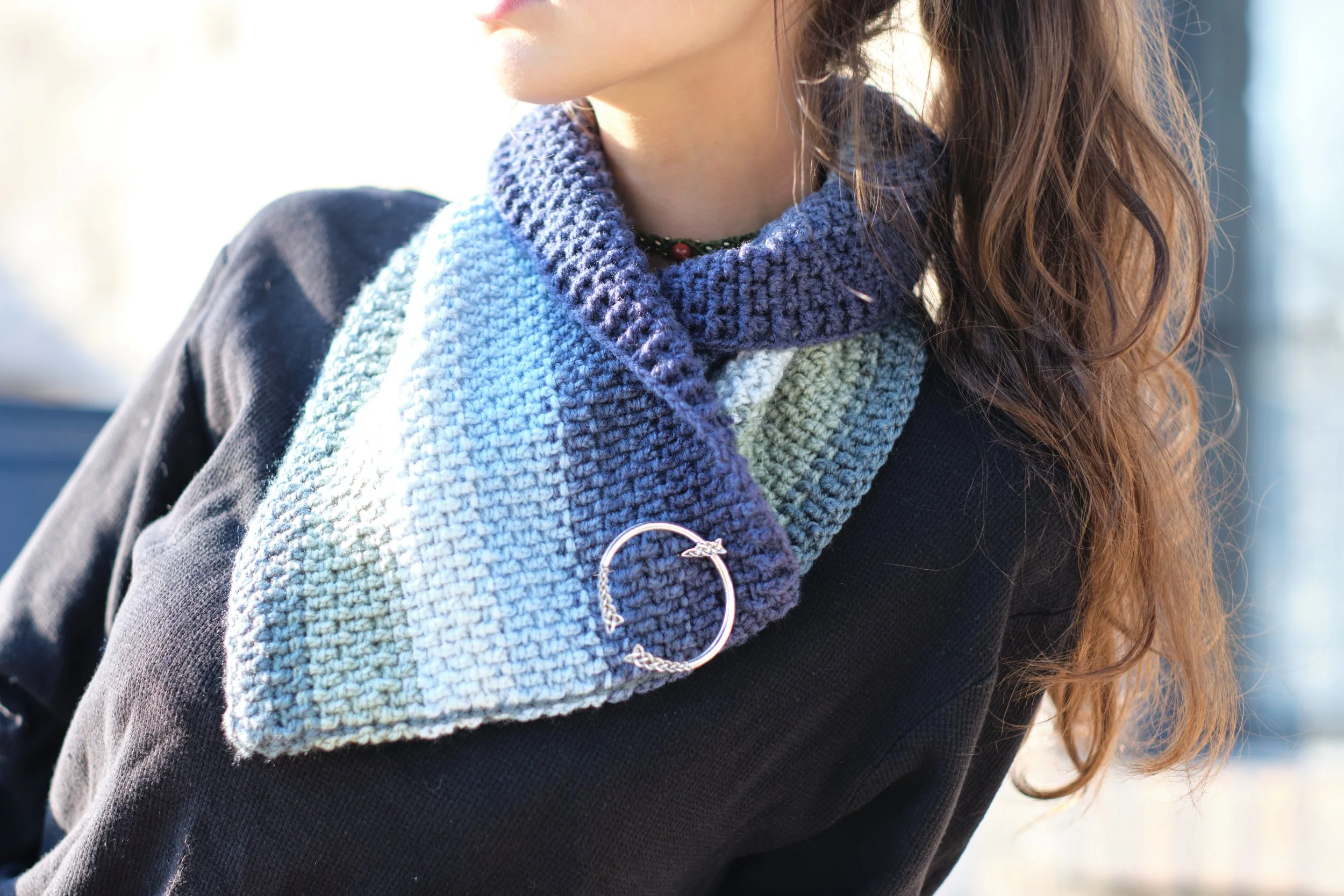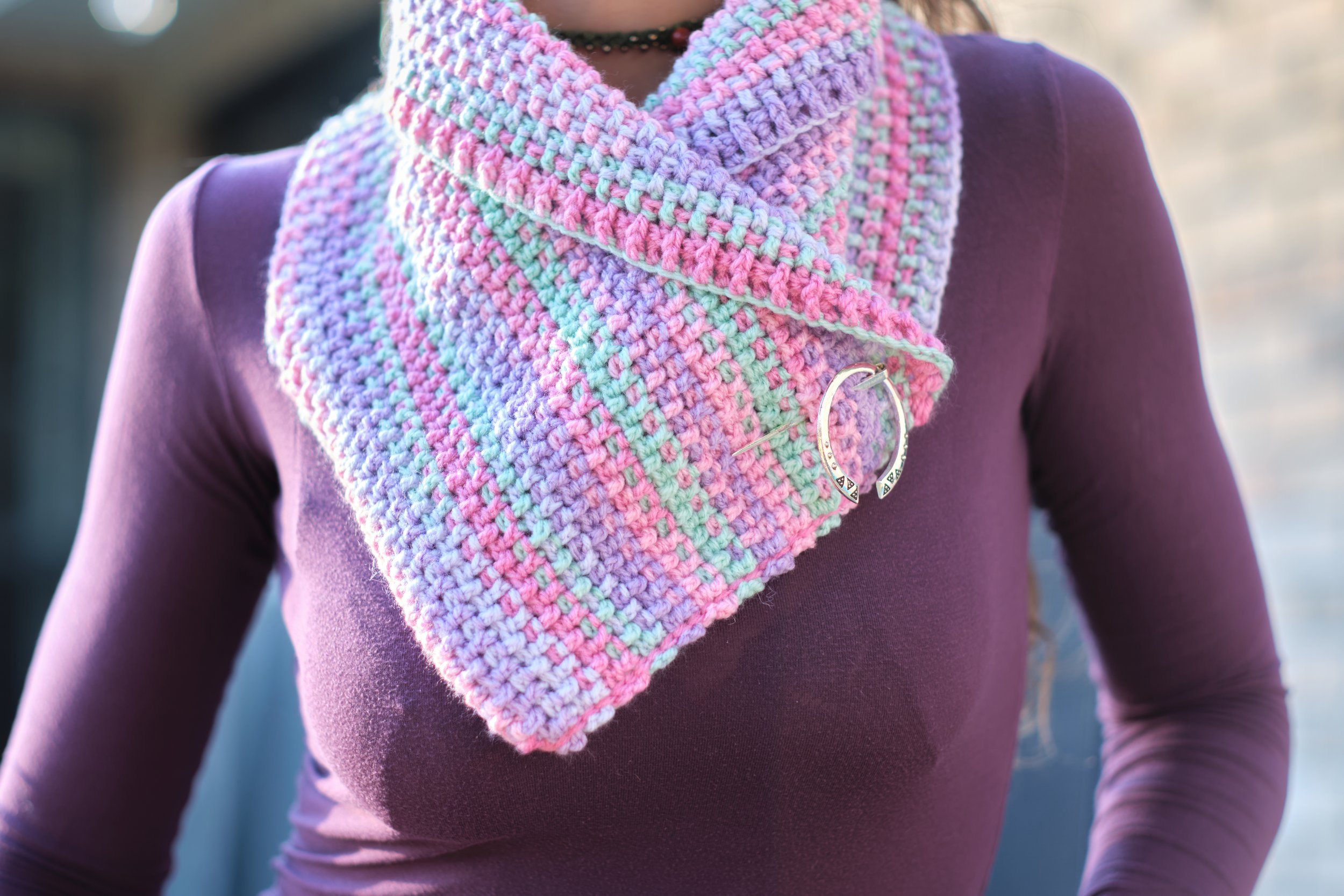The “Candy Sunset” Cowl is for the sweetest people. Featuring yarn with an array of vibrant, sugary tones in a sunset-like gradient and a delicate pin brooch accent, the most colorful person will absolutely adore this bright and cozy addition to their winter wardrobe!